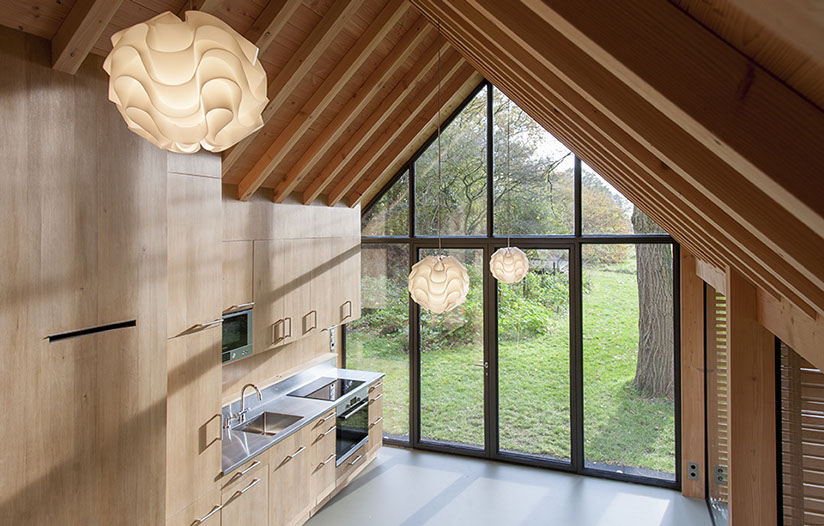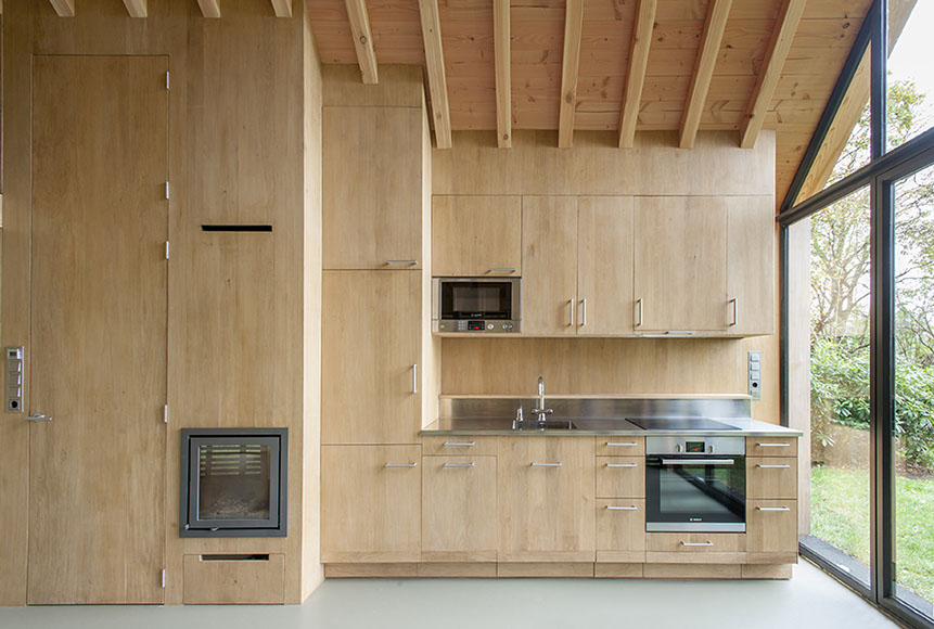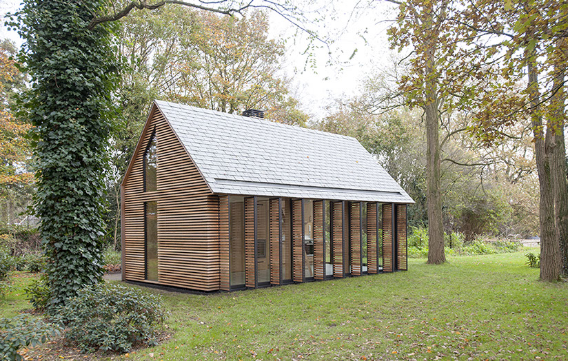 Op de overgang van de Utrechtse Heuvelrug en het veenweidegebied ten noorden van Utrecht is een compacte, houten recreatiewoning gerealiseerd. Het ogenschijnlijk eenvoudige huisje heeft een archetypische uitstraling met een zadeldak, schoorsteen en houten gevelbekleding. Door de detaillering, maar ook door de asymmetrische hoofdopzet is een hoge mate van verfijning verkregen.