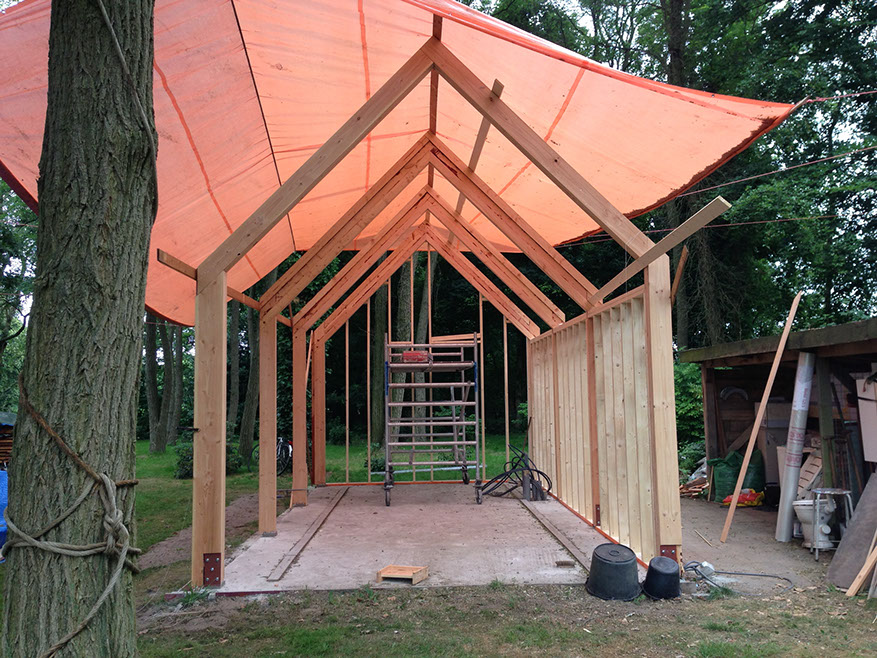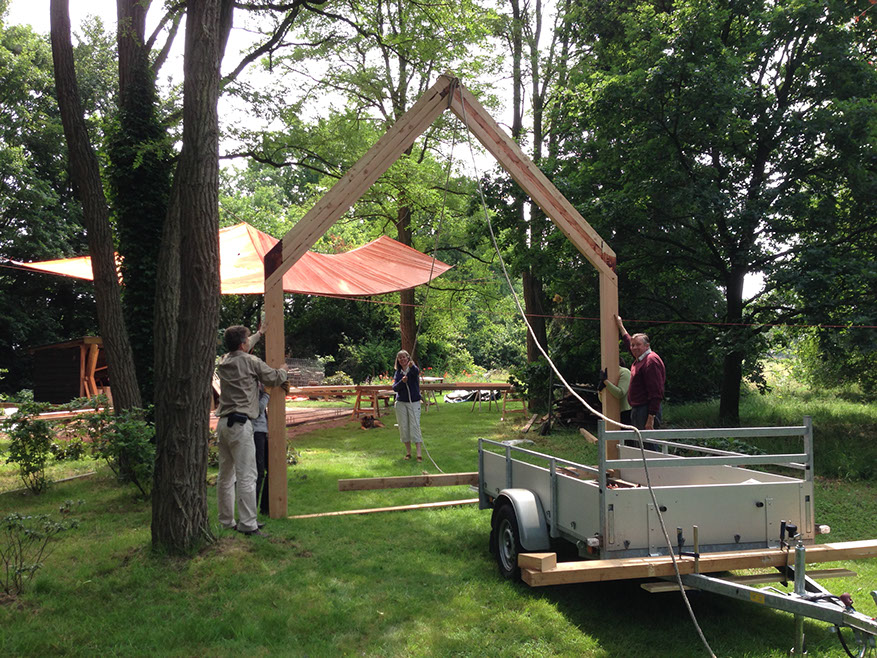 Het tuinhuis is tot stand gekomen door een bijzondere samenwerking tussen architectenbureau Zecc uit Utrecht en interieurarchitect Roel van Norel. Het basisconcept is ontworpen door Zecc, waarna Roel van Norel het plan in detail heeft uitgewerkt en bovendien grotendeels zelf heeft gebouwd.