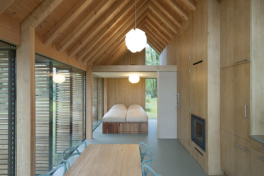 Op de overgang van de Utrechtse Heuvelrug en het veenweidegebied ten noorden van Utrecht is een compacte, houten recreatiewoning gerealiseerd. Het ogenschijnlijk eenvoudige huisje heeft een archetypische uitstraling met een zadeldak, schoorsteen en houten gevelbekleding. Door de detaillering, maar ook door de asymmetrische hoofdopzet is een hoge mate van verfijning verkregen.